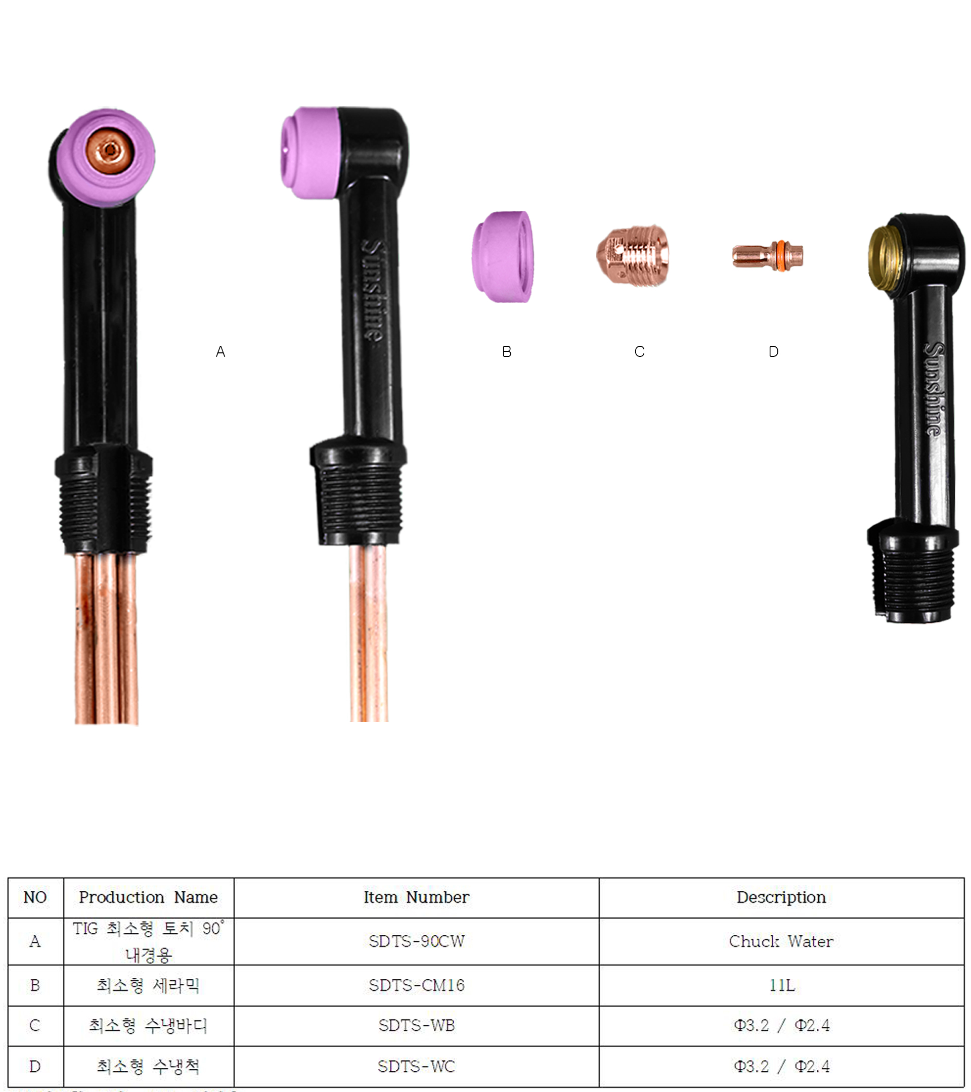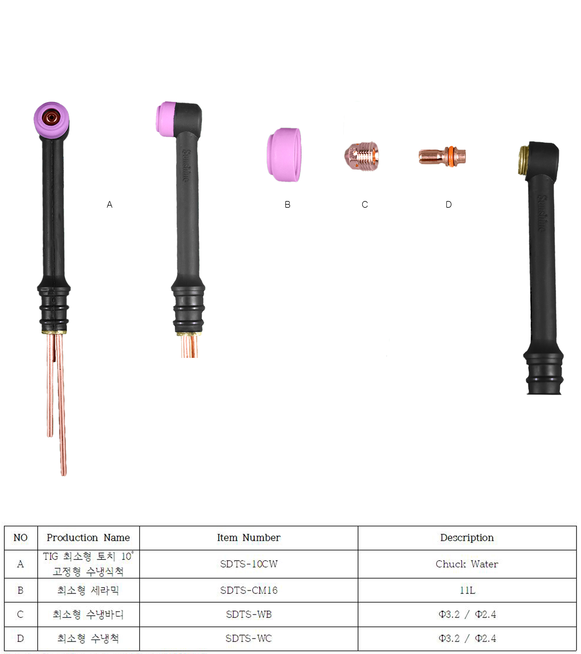 TIG 최소형 토치 - 10도 고정식 척수냉식