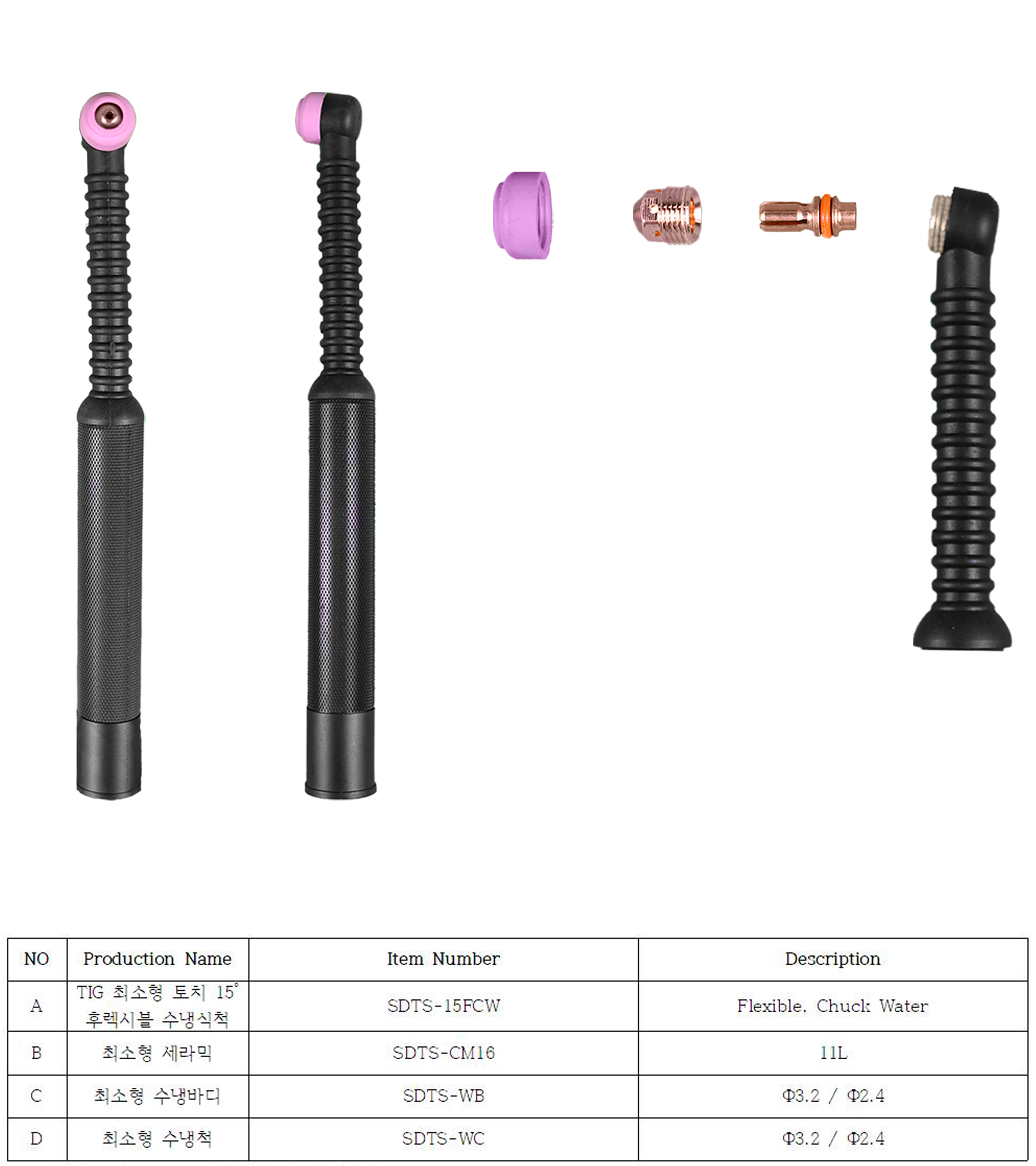 TIG 최소형 토치 - 15도 후렉시블 척수냉식